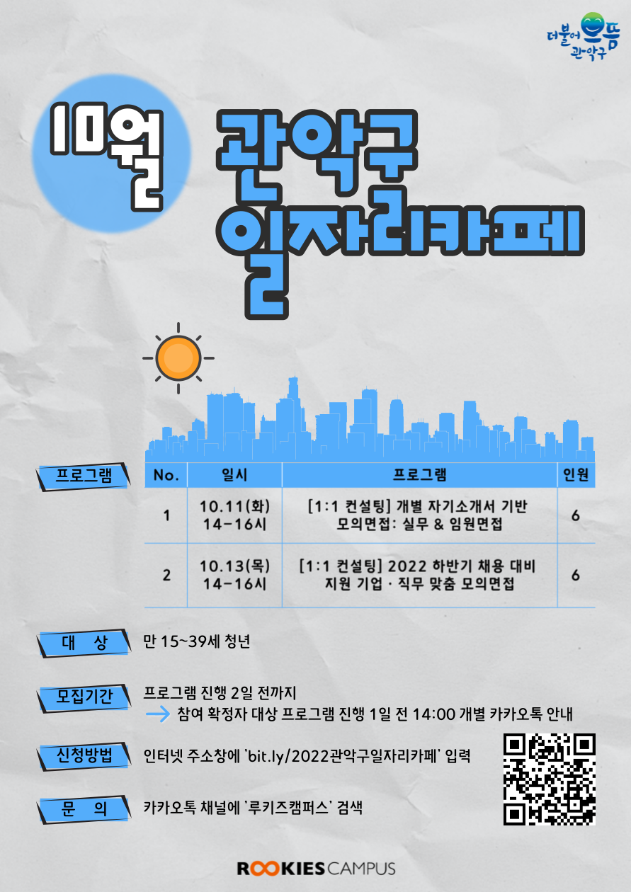 하반기 취업을 앞두고 1:1 맞춤 컨설팅이 필요한 분들을 위한 10월 프로그램 OPEN