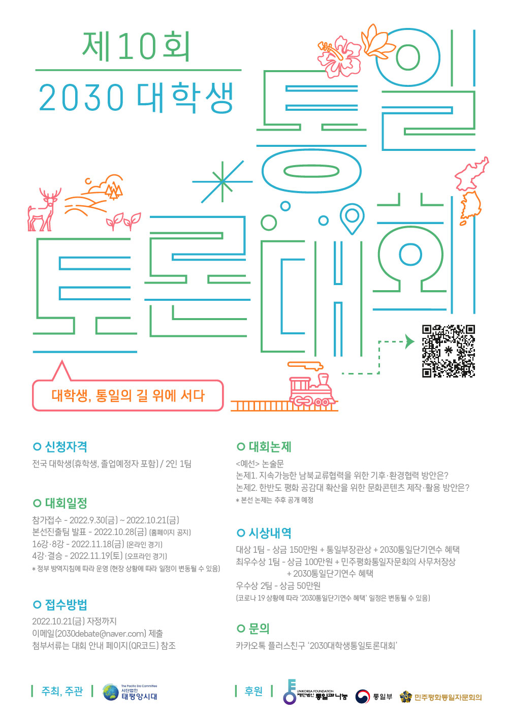 ▷문의사항 : 카카오톡 플러스친구 '2030대학생통일토론대회'