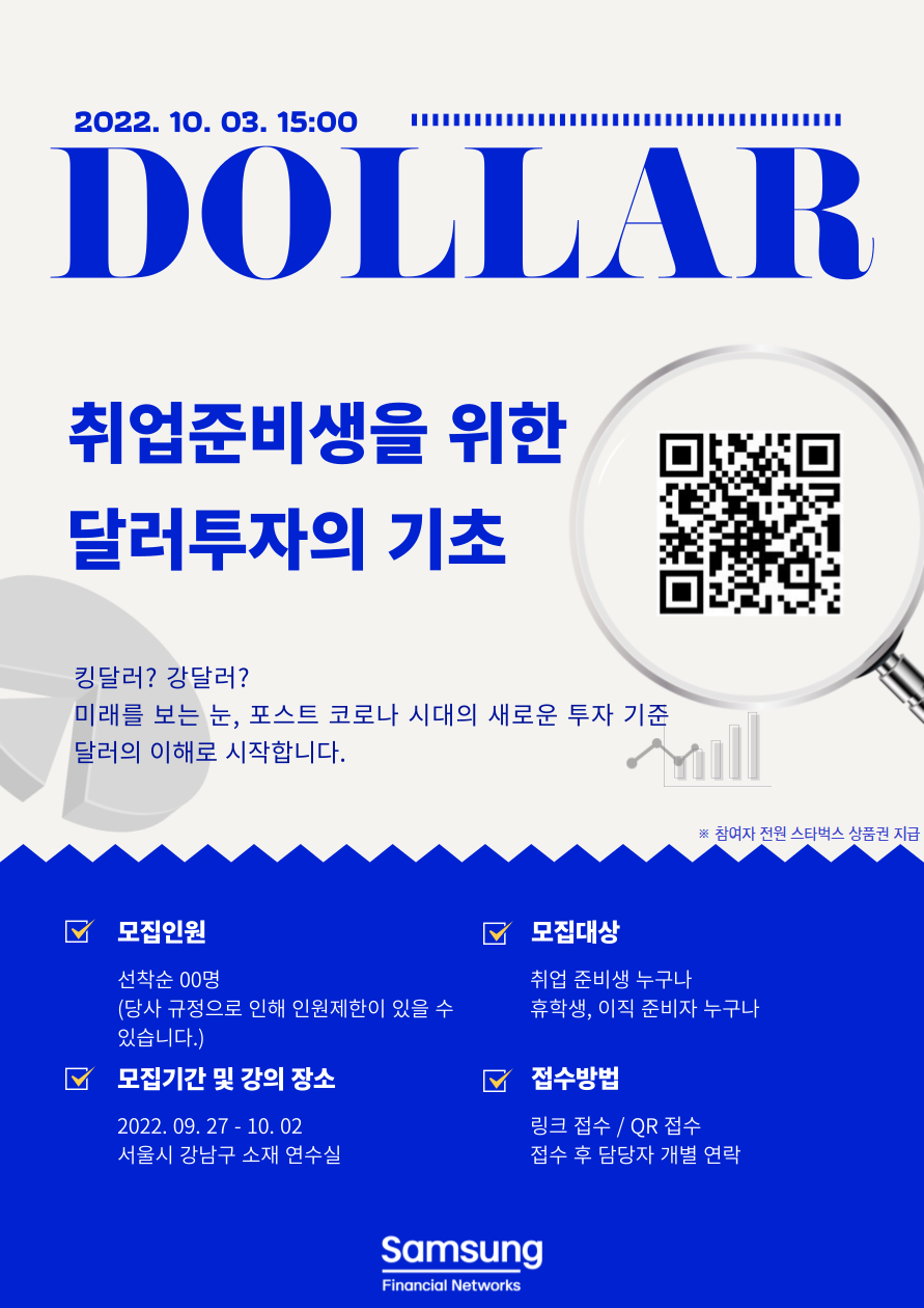 달러에 대한 기초를 다지기 위한 무료강의에 취준생들을 초대합니다.