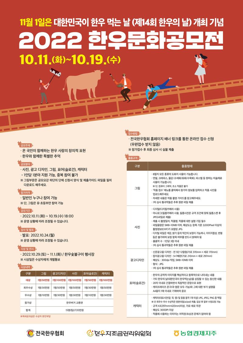 - 시상 및 전시 : 2022년 10월 29일(토) \~ 11월 1일(화) _ 한우숯불구이 행사장