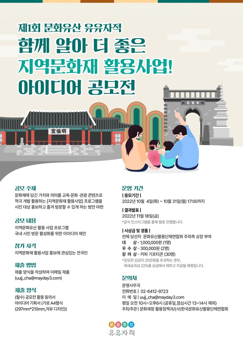 <공모주제> - 문화재에 담긴 가치와 의미를 교육 문화 관광 콘텐츠로 적극 개발 활용하는 지역문화재활용사업 프로그램을 시민대상으로 홍보하고 즐겨 방문할 수 있게 하는 방안 마련