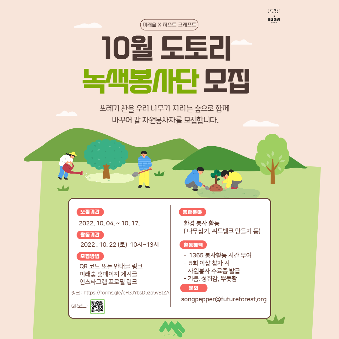 - 모집 기간: 2022.10.04 \~ 2022.10.17 - 활동 기간: 2022.10.22. 10시 \~ 13시 (3시간)