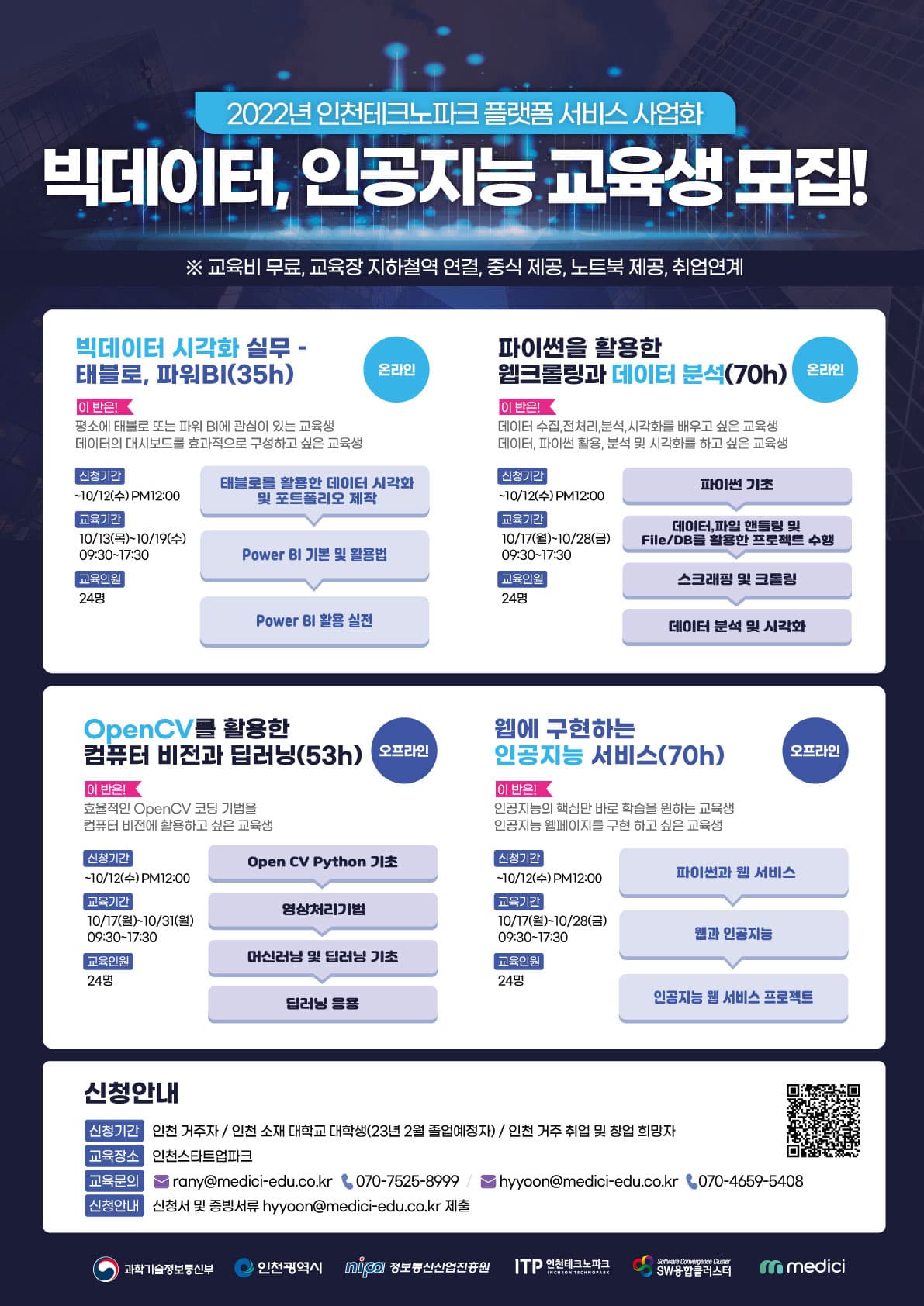[인천테크노파크] 빅데이터 & 인공지능 교육생 모집