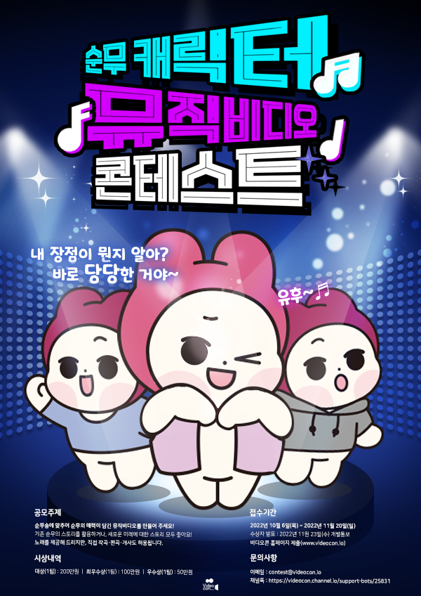 ■ 순무송에 맞추어 순무의 매력이 담긴 뮤직비디오를 만들어 주세요! 기존 순무의 스토리를 활용하거나, 새로운 미래에 대한 스토리 모두 좋아요! 노래를 제공해 드리지만, 직접 작곡·편곡·개사도 허용됩니다.