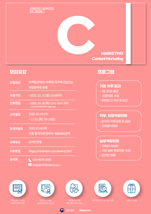 - 고용노동부 / 미니컴퍼니 C 13기 (마케팅-콘텐츠 마케팅 편)