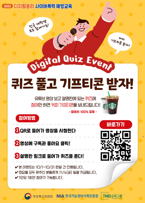 대학생을 대상으로 디지털윤리 교육영상을 시청하고 퀴즈도 푸는 이벤트를 진행하고 있습니다.