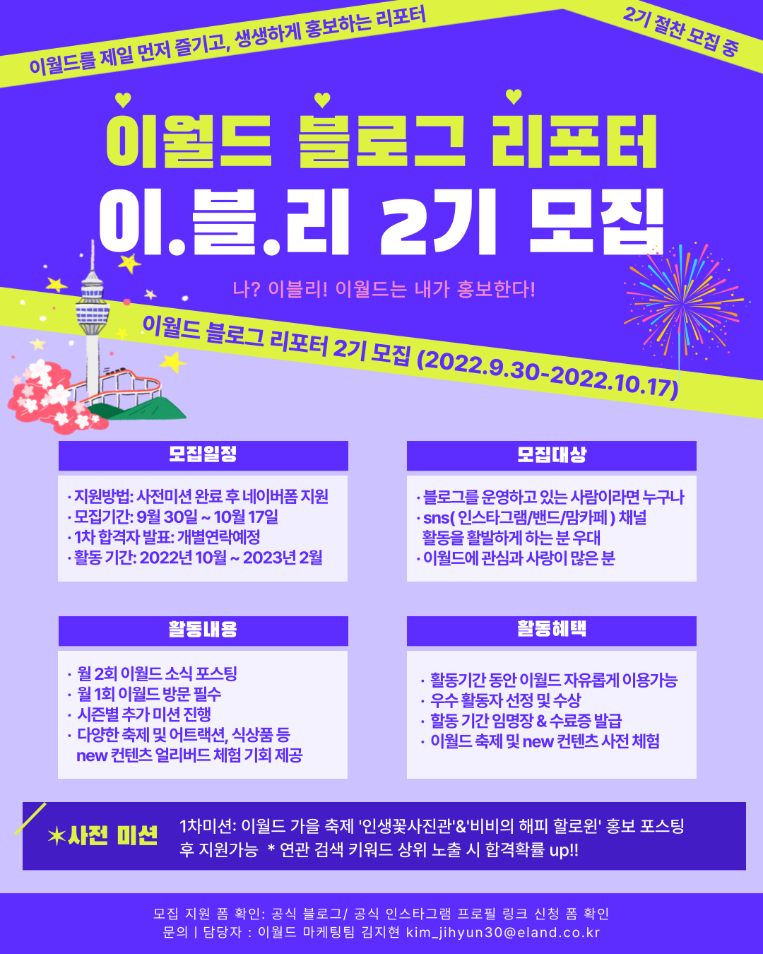공식 이월드 블로그 리포터 이블리 2기 모집