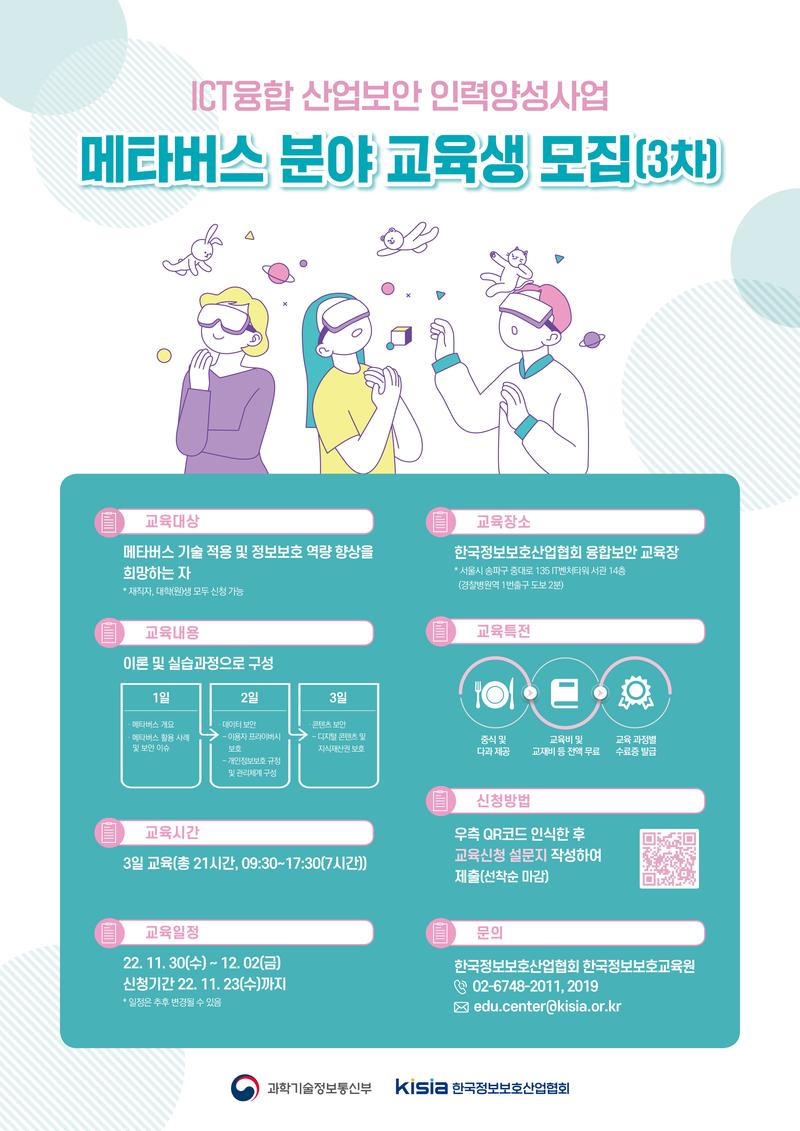 ICT융합산업보안 인력양성사업 메타버스 분야 교육생을 모집합니다.