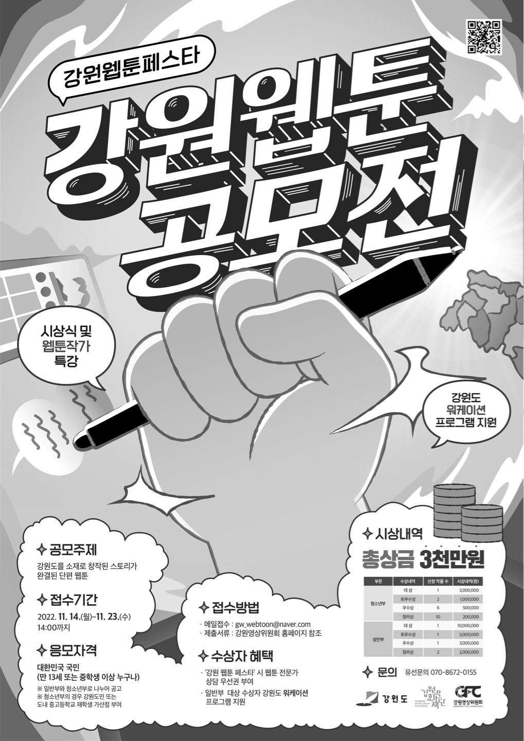 ● 문의 사항 - '강원 웹툰 공모전 사무국' 070-8672-0155 또는 panculture@naver.com 메일 문의