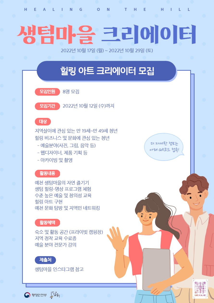 [참가 자격] 지역살이이 관심 있는 만 19세 \~ 만 49세 청년 (예천군 청년 기준) 힐링 비즈니스에 관심 있는 청년 힐링문화로 새로운 삶을 만들어 보고 싶은 청년