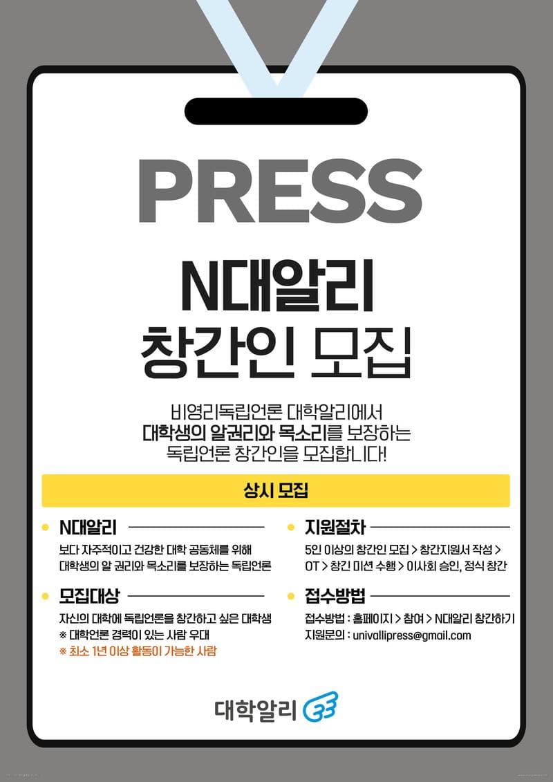 대학알리는 알리 창간인을 상시 모집합니다.