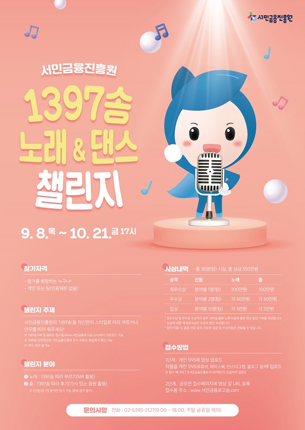 - 서민금융진흥원의 ‘1397송’을 자신만의 스타일로 따라 부르거나, 안무를 따라 춰주세요!