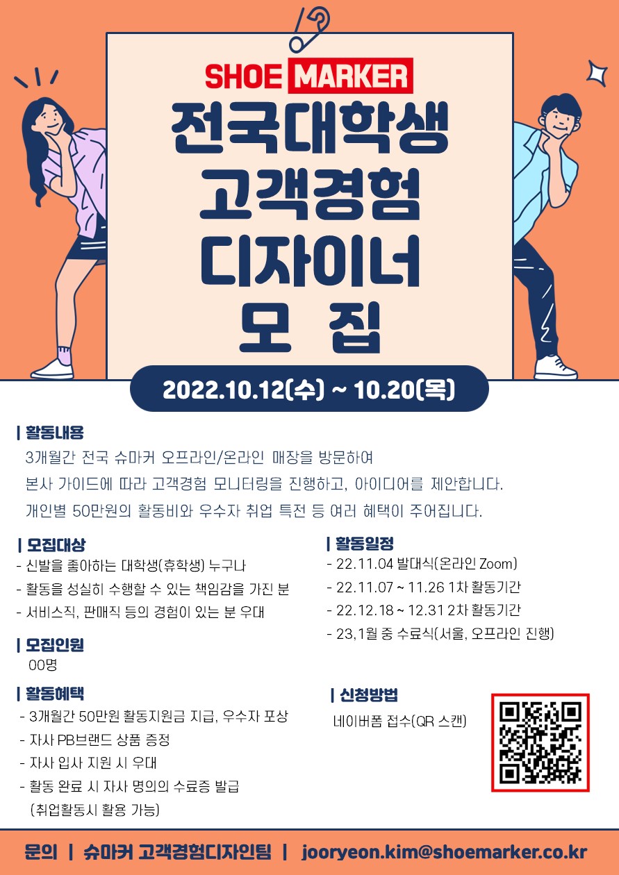 ○ 문의 ☏ 02) 705 - 4415 ✉️ jooryeon.kim@shoemarker.co.kr