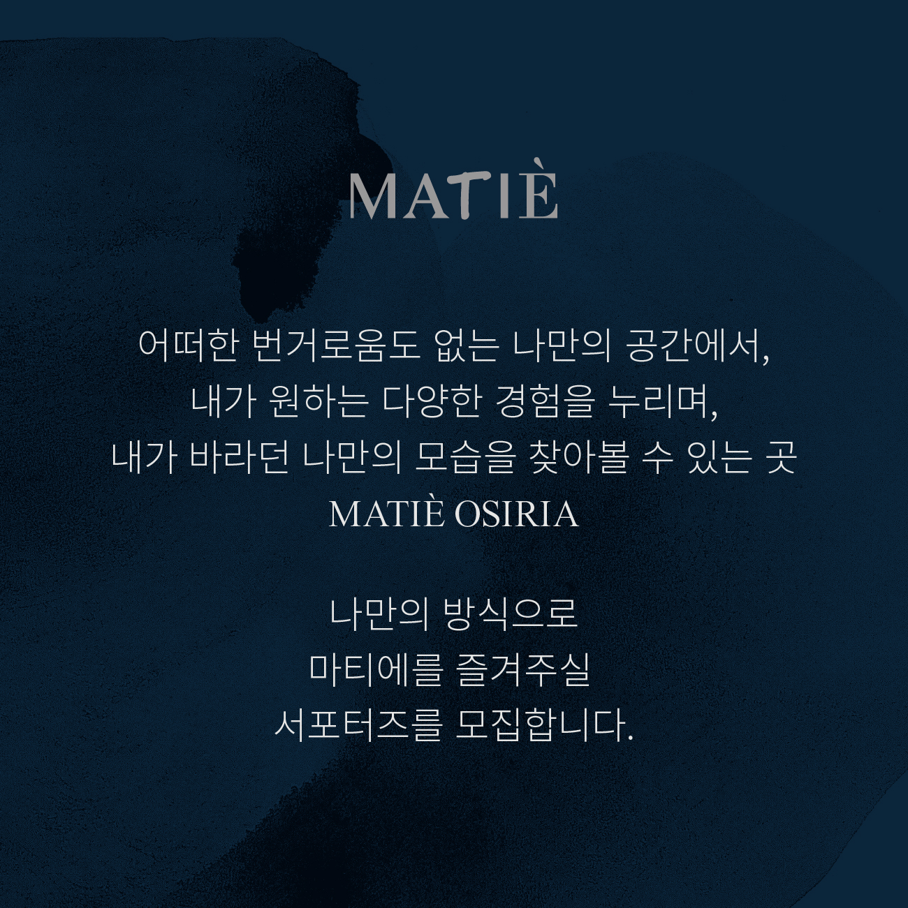 나만의 방법으로 마티에를 즐겨주실 서포터즈를 모집합니다.