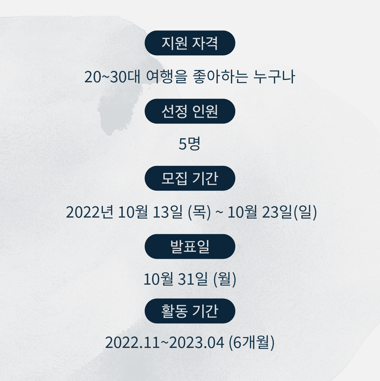 지원자격 : 20\~30대 여행을 좋아하는 누구나