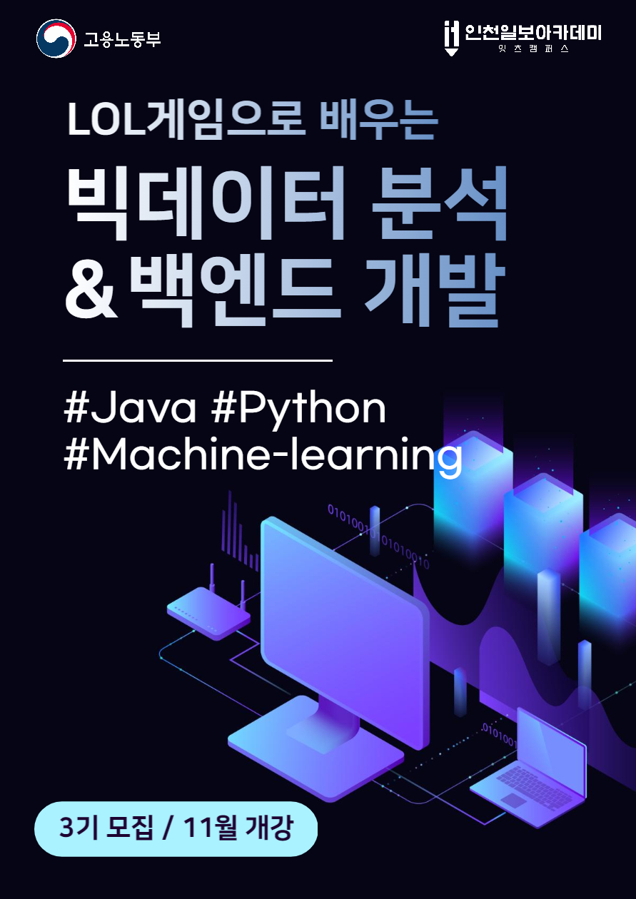 -어떤 걸 배울 수 있나요? 1) 빅데이터 분석을 위한 파이썬 프로그래밍 2) 데이터베이스 구현 능력을 배양을 위한 빅데이터 관련 기술 3) 빅데이터를 활용한 웹 서비스 개발을 위한 백엔드 프로그래밍 관련기술 4) 빅데이터 시각화를 위한 프론트엔드 프로그래밍 관련 기술 5) 위 기술들을 활용한 LOL 사용자 데이터 분석 및 데이터 시각화 서비스 페이지 개발 프로젝트까지\~