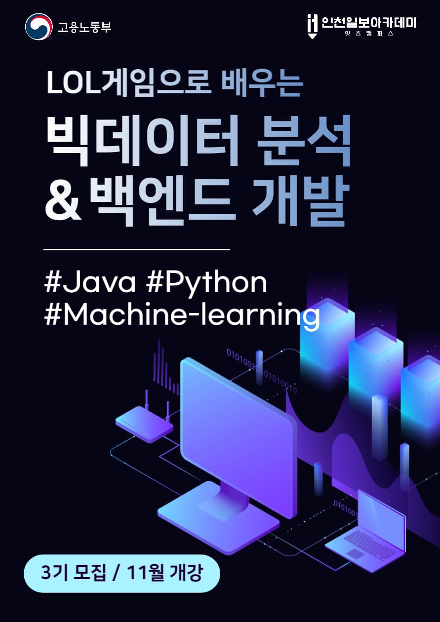 -인천일보아카데미는 어떤 곳인가요? 1) 고용노동부 선정 인천유일 "베스트직업훈련기관" (전국 10개) 2) 고용노동부 지정 5년인증 IT분야 우수훈련기관 3) 비전공자를 위한 사전교육부터 야간 보충강의까지, 훈련생 학습격차를 최소화! 4) IT취업 전문가와 함께하는 1:1 취업멘토링까지 세심하게 진행!