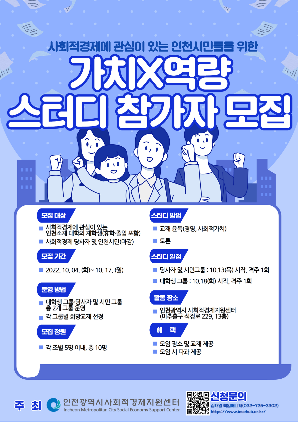 - 인천 사회적경제에 이바지할 신인재 발굴 및 육성