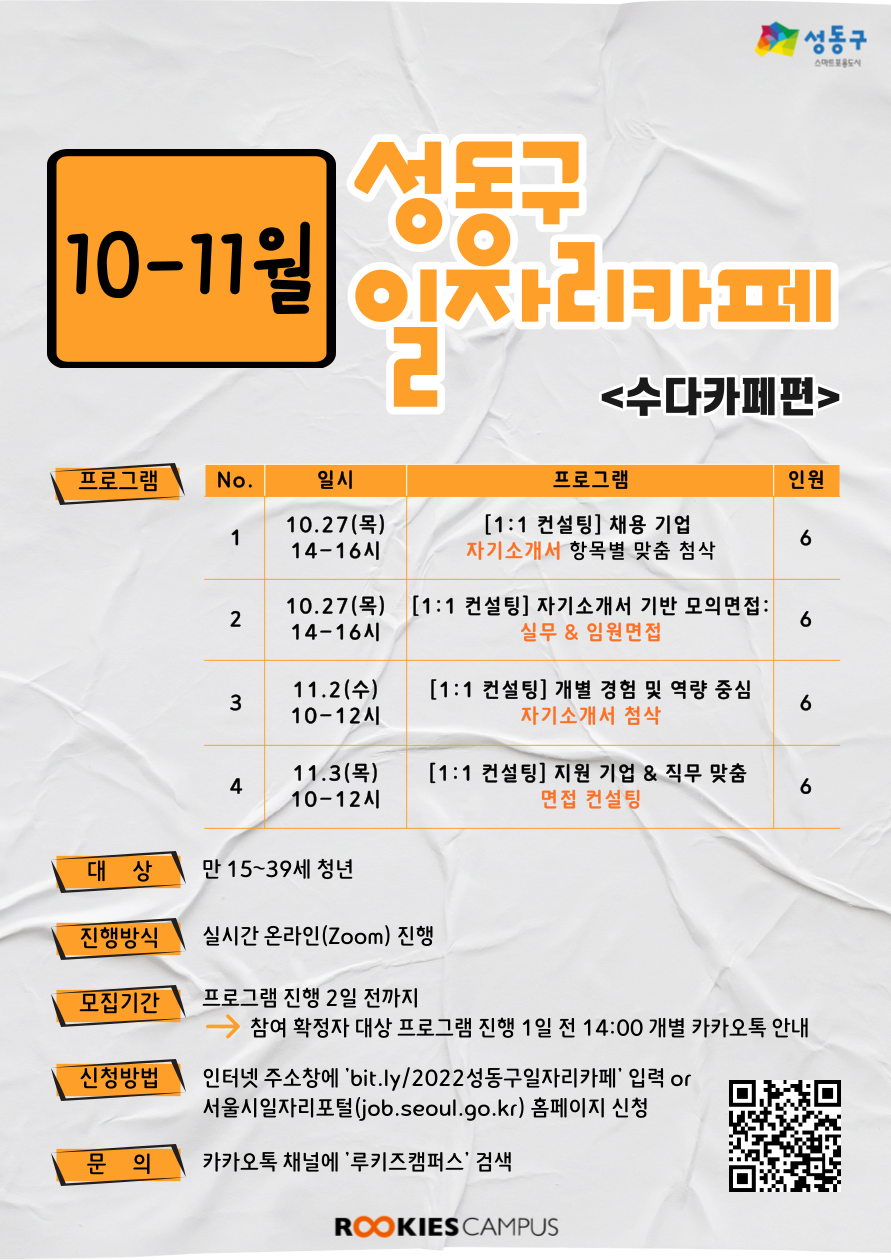 2022 하반기 대기업 혹은 공기업 채용을 준비하고 있다? 여러분을 위한 개별 맞춤 컨설팅 시간! 지원 기업 & 직무에 맞춰 1:1 자소서 첨삭에 이어 면접 컨설팅까지 받을 수 있는 기회