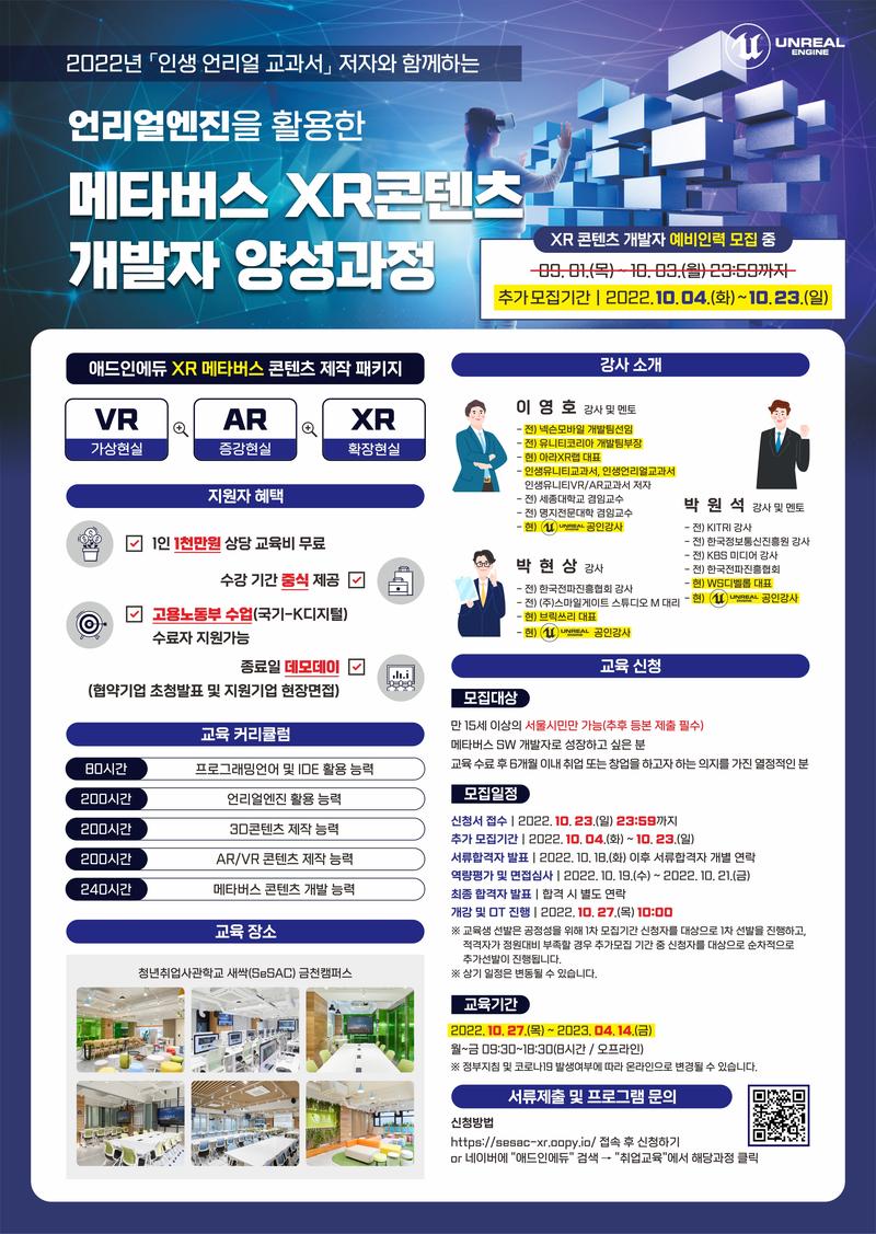 [청년취업사관학교] 언리얼엔진을 활용한 메타버스XR 콘텐츠 개발자 양성과정