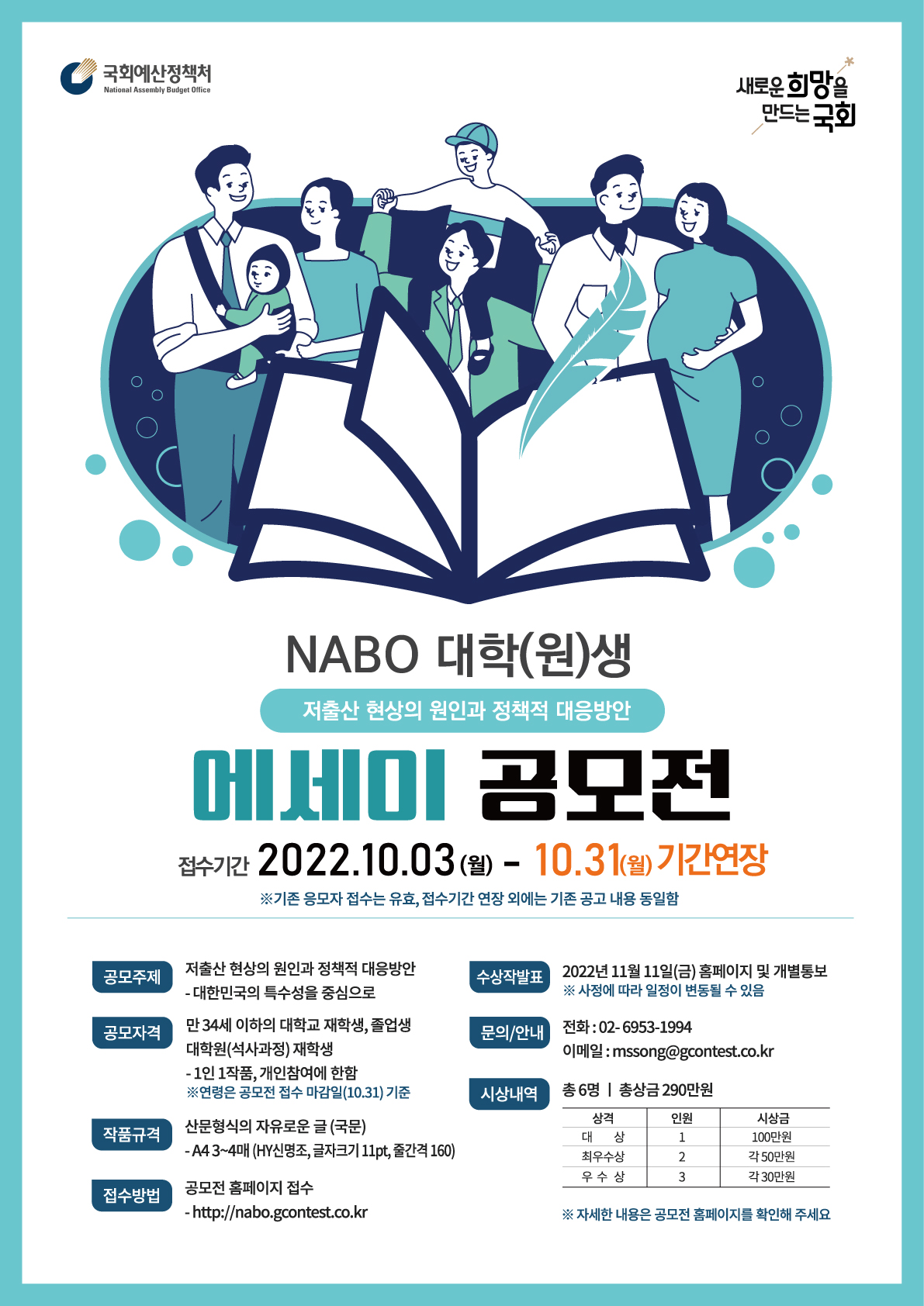 국회예산정책처(NABO) 대학(원)생 에세이 공모전 (기간연장)