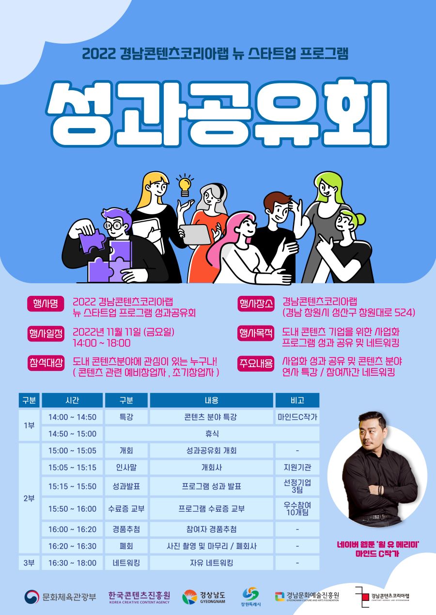 - 사업화 성과 공유 및 콘텐츠 분야 연사 특강 (네이버웹툰 ' 윌 유 메리미' 마인드 C작가)