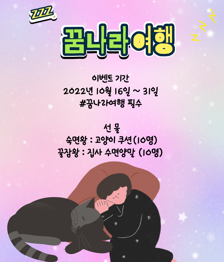 '너만 없는 고양이' APP에서 참여 잠자는 고양이 사진 한장과 짧은 설명글 #꿈나라여행 해시태그 필수