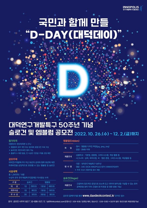 [추천공모전] 대덕연구개발특구 50주년 기념 슬로건·엠블럼 공모전 (10.26 ~ 12.2)
