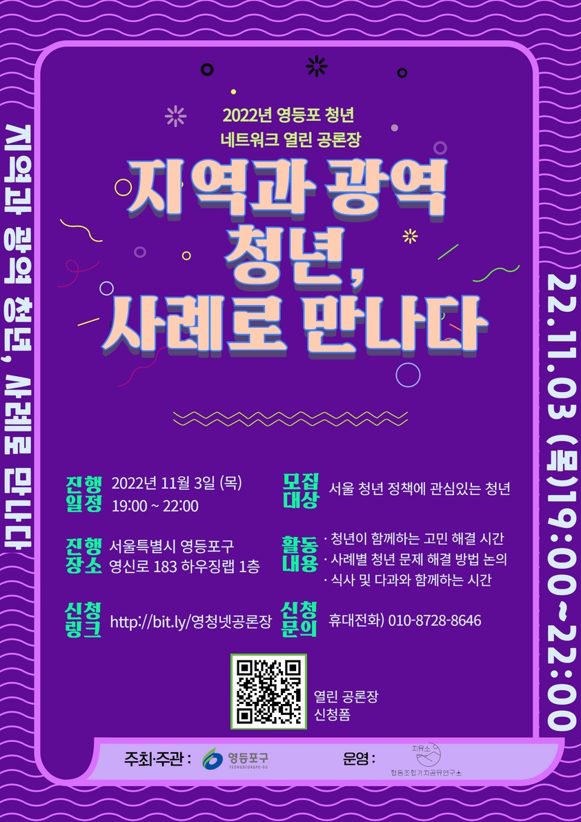 참여하실 청년분들은 아래 폼을 작성 부탁드립니다 신청링크 :bit.ly/영청넷공론장