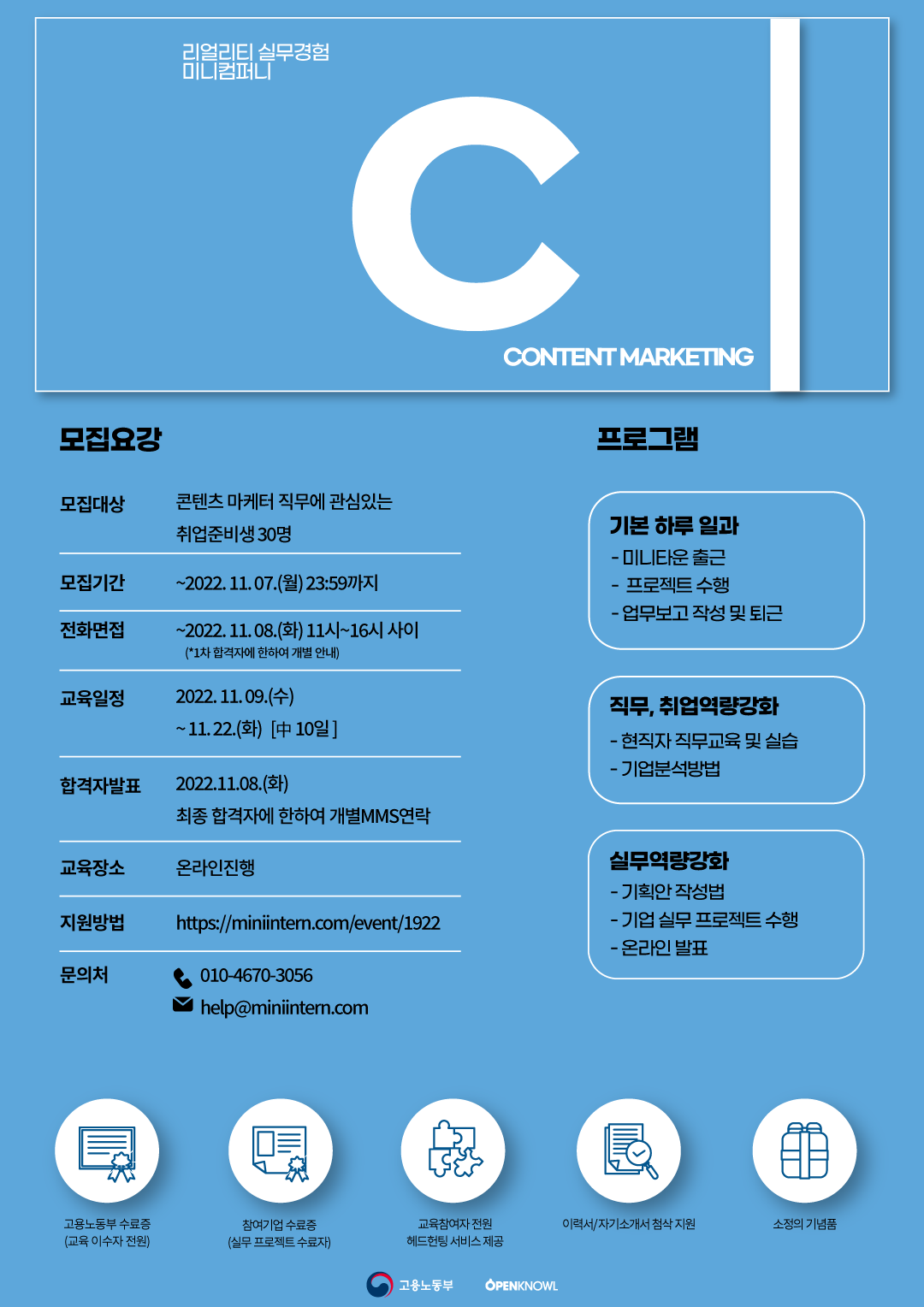 - 고용노동부 / 미니컴퍼니 C 18기 (콘텐츠 마케팅 편)