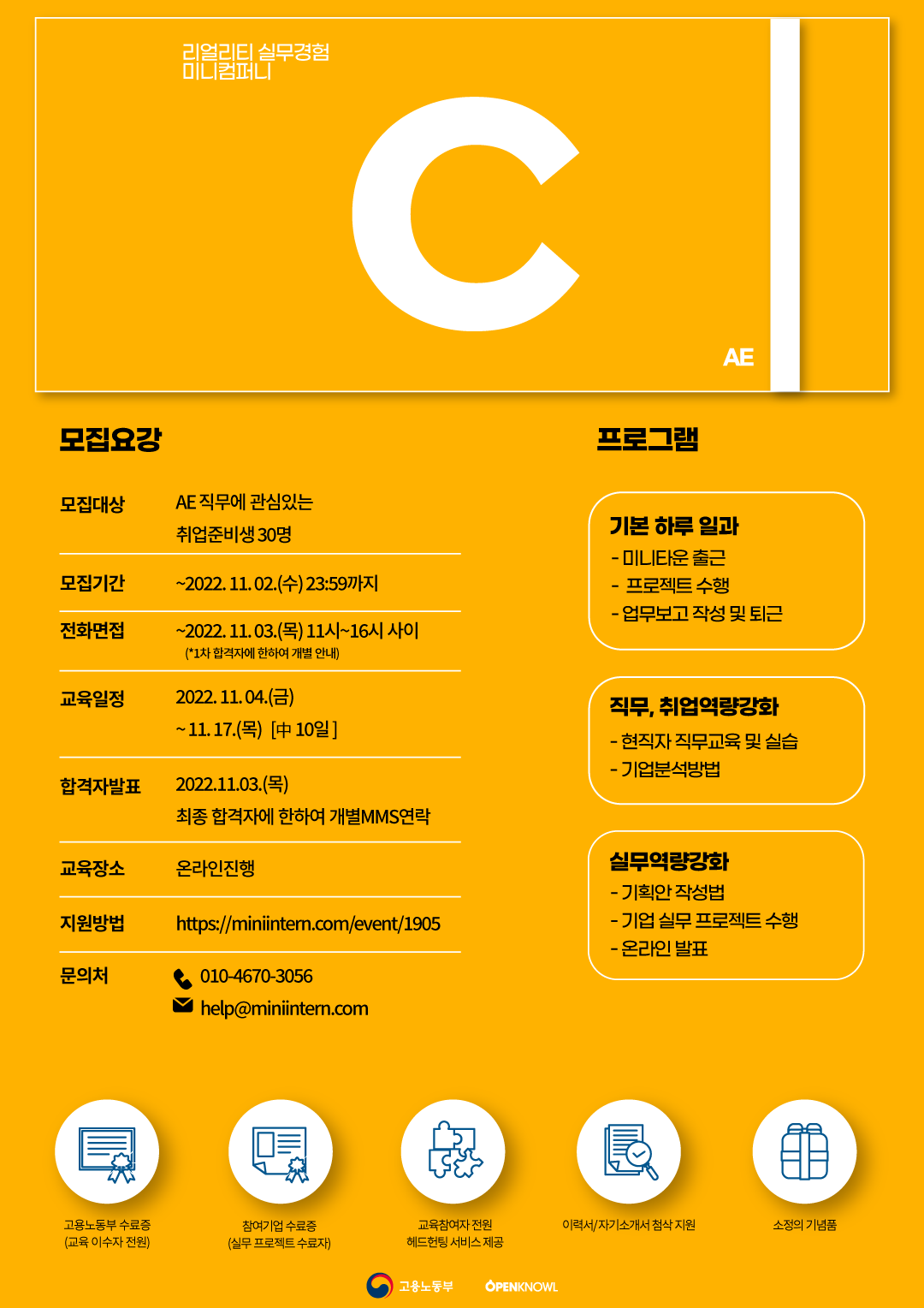 ▷ 주최사/ 활동명 - 고용노동부 / 미니컴퍼니 C 17기 (AE 편)