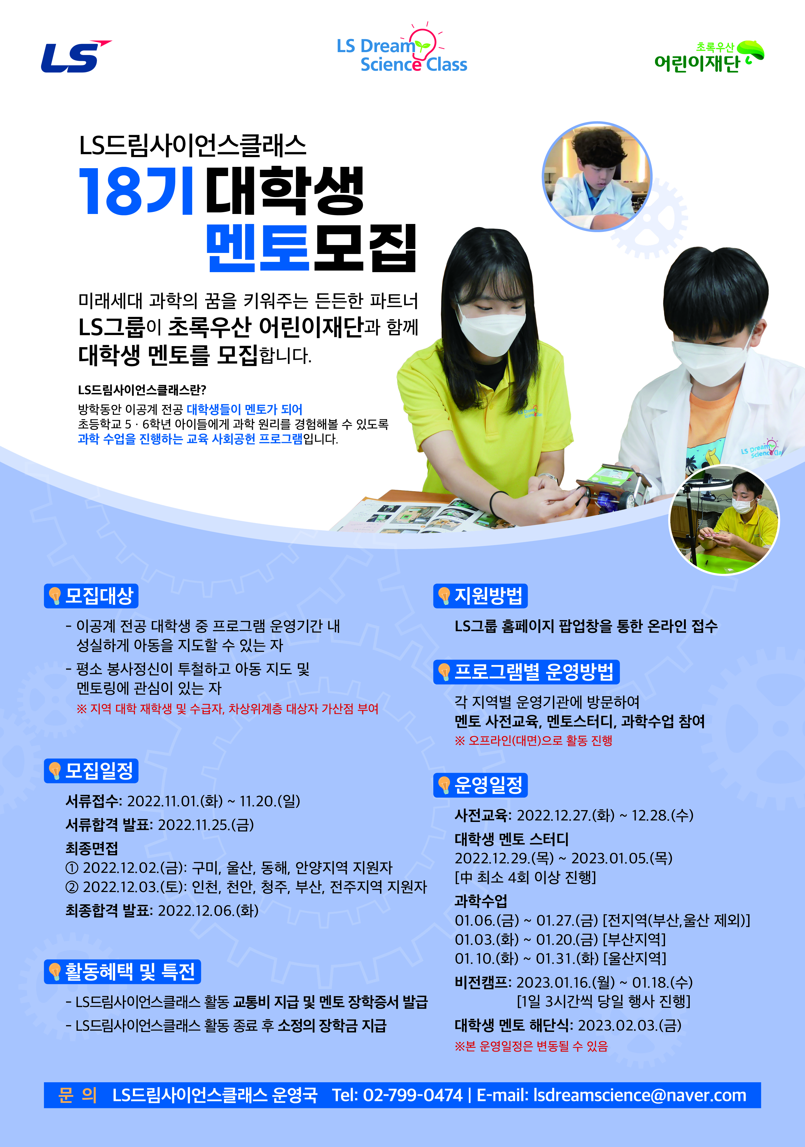 LS드림사이언스클래스 운영국 (Tel. 02-799-0474)
