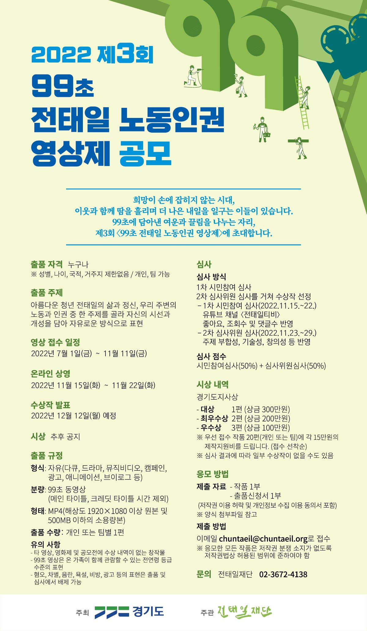 99%가 만드는 99%를 위한 제3회 〈99초 전태일 노동인권 영상제〉 공모