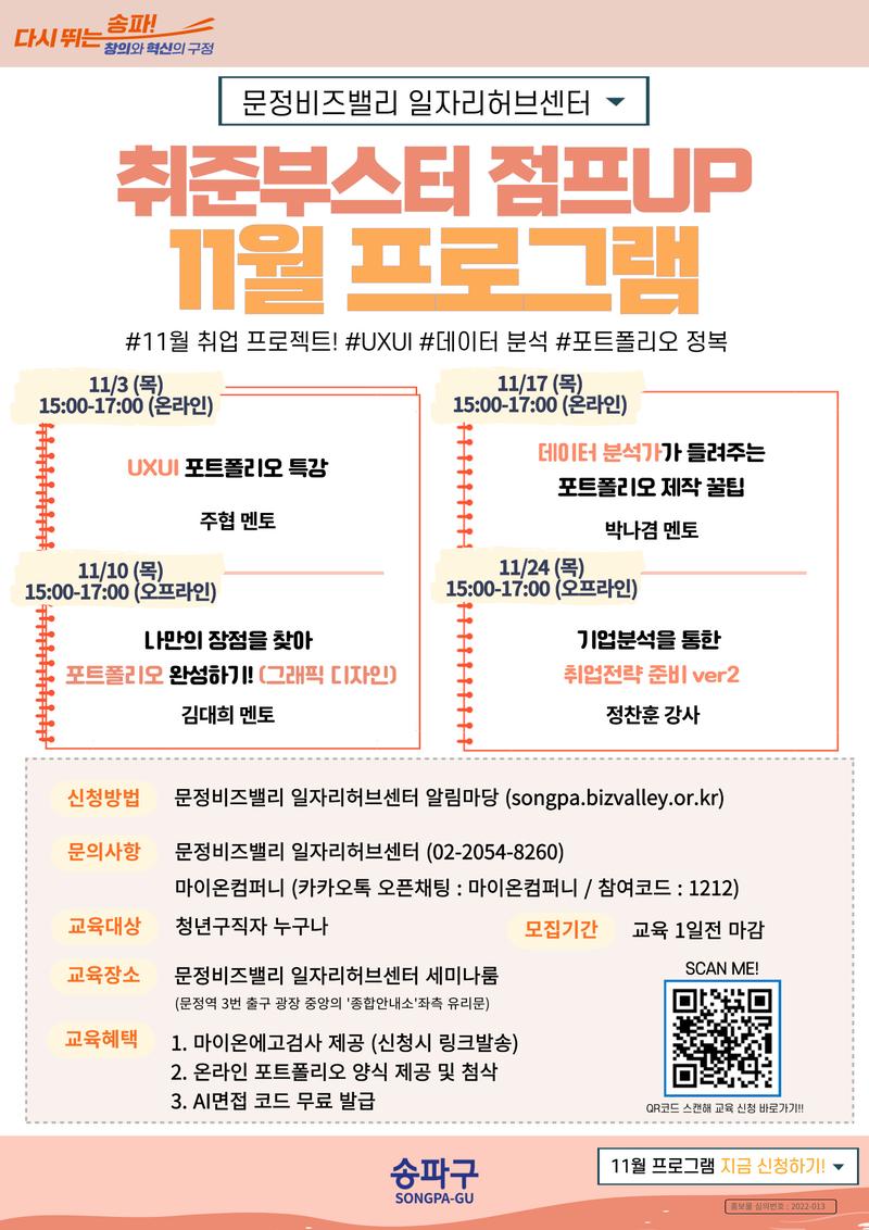 [송파구] ♬취준부스터 점프UP!♬ 11월 프로그램 안내