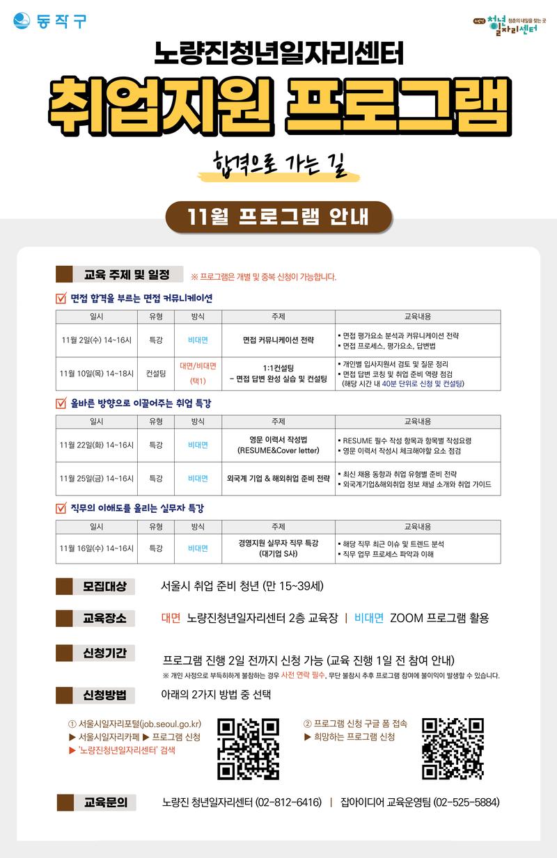 ○ 주최사 / 활동명 동작구 노량진 청년일자리센터 / 취업 지원 프로그램(11월) - 합격으로 가는 길