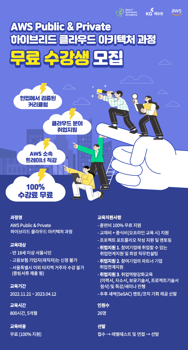 - (강동캠퍼스)AWS Public & Private 하이브리드 클라우드 아키텍처 과정 : 2022-11-21 \~ 2023-04-12