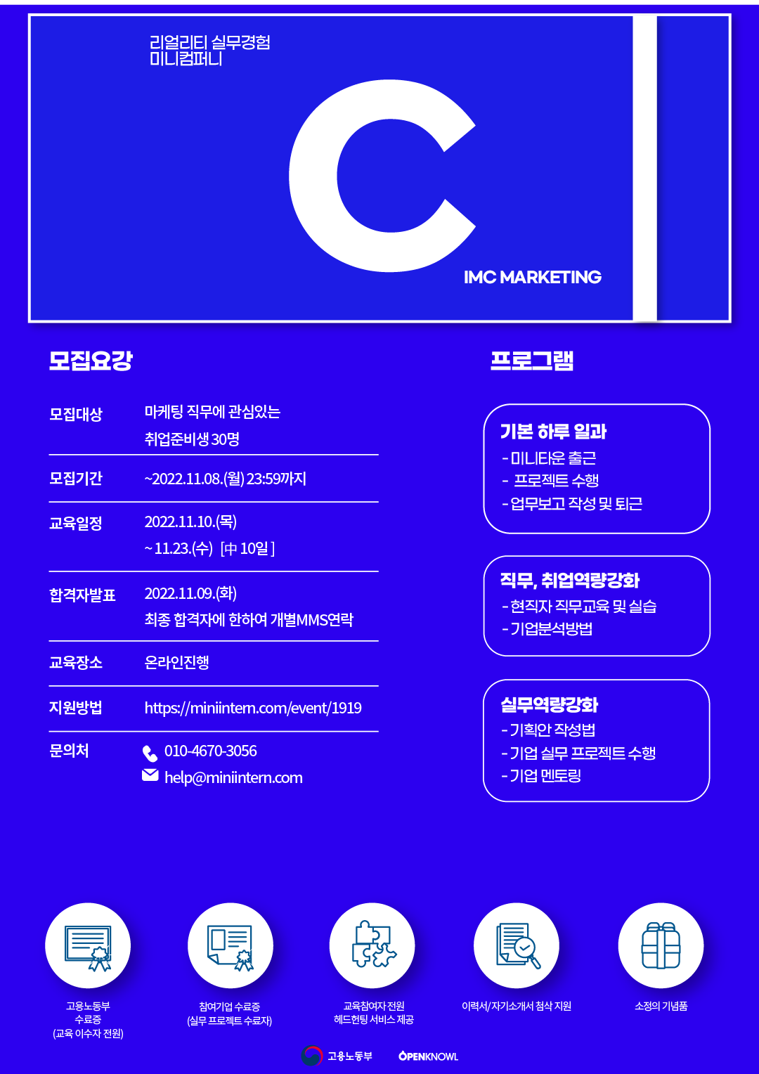 ▷ 주최사/ 활동명 - 고용노동부 / 미니컴퍼니 C 19기 ( IMC 마케팅 편)