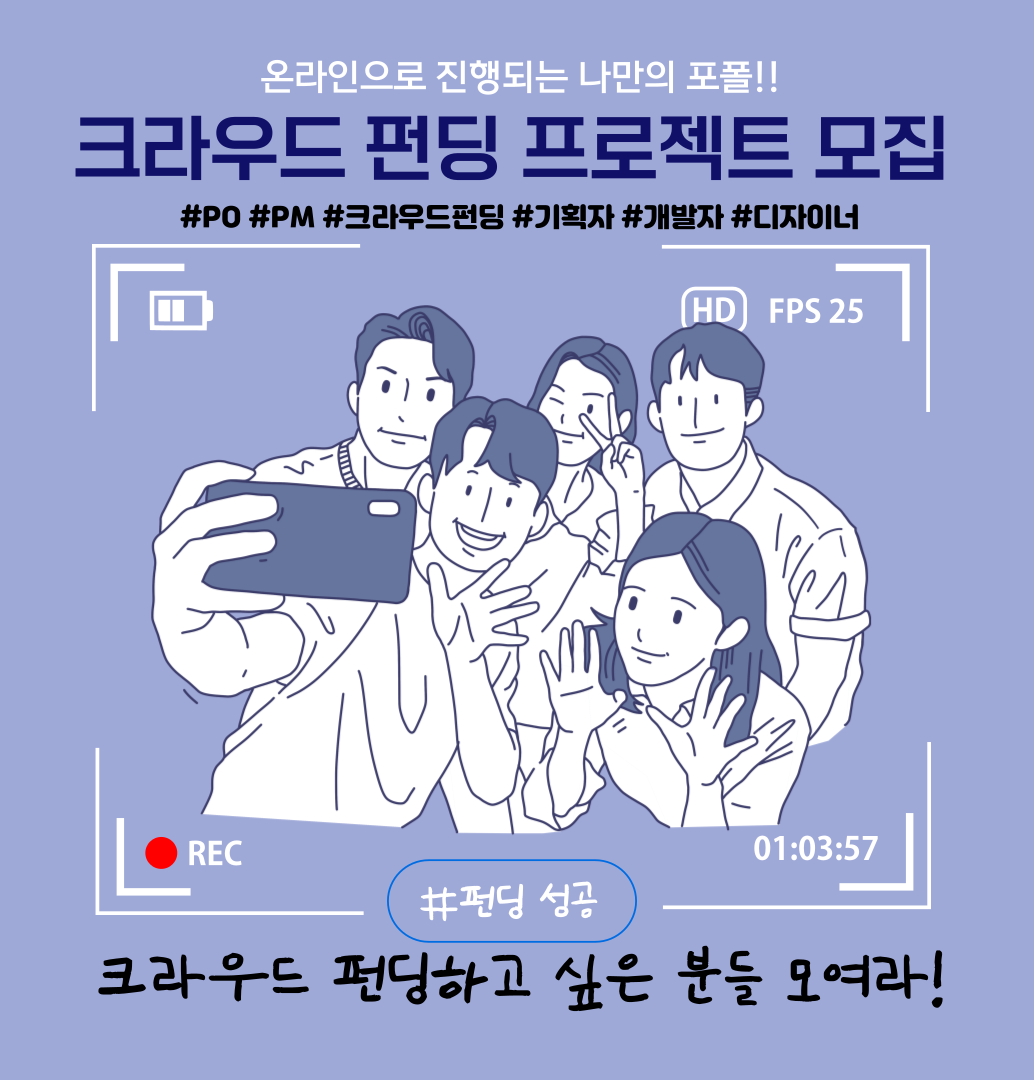 안녕하세요, 현재 IT PM/PO직 및 기획교육을 진행하고 있는 송사장입니다. 여러분들께 "온라인으로 진행하는 크라우드 펀딩 프로젝트"를 소개합니다! . *이런 분들이 신청하시면 좋아요 1) 상품기획, 서비스기획 직군을 희망하시는 분들 2) 크라우드 펀딩을 팀으로 해보고 싶은분들 3) 스타트업에 관심이 많은 분들 4) 기획에 대해 배우고 싶으신 분들 . *이런 활동을 합니다. 1) 프로젝트팀을 빌딩합니다. 2) 어떤 상품을 펀딩을 진행할지 아이디어를 정합니다. 3) 정해진 상품을 펀딩 등록까지 힘차게 달려갑니다! 4) 현직 및 경험자의 멘토링이 함께 진행됩니다. . *모집기간 : 2022.11.03 \~ 2022.11.09 . *선정발표일 : 2022.11.10 . *팀빌딩 및 OT : 2022.11.11 . *모집인원 : 총 30명 개인별 지원이며 팀빌딩은 MMO에서 진행해드립니다. . *프로젝트 진행기간 : 2022.11.11 \~ 2022.12.09 (연장가능) . *혜택 1) 자신만의 상품과 포폴을 만들 수 있다. 2) 경험자의 노하우를 배울 수 있다. 3) 펀딩 수익발생 시 돈을 벌 수 있다. 4) 신청만 하셔도 기획에 관심있는 분들의 모임방에 초대해드립니다. 다양한 IT 및 기획소식을 접하실 수 있습니다. . *참가 신청: https://forms.gle/DBT9P7e6c24sKYEE7 . *진행 커리큘럼 https://morning-kayak-412.notion.site/5aa8597055514f3696fed536eca7e233 . *문의 카톡 : https://open.kakao.com/o/sUyKZ3te 이메일 : itcreator.song@gmail.com