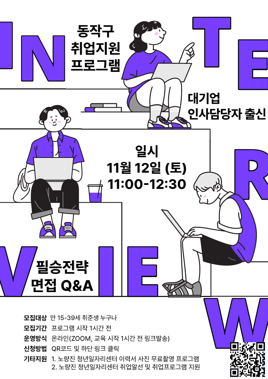 [🤚동작구만!🤚] 2022 청년 일자리카페 취업지원 11월 프로그램 대기업 인사담당자 출신과 함께하는 면접 필승 전략! 면접 준비가 어려웠던 모두에게 안내 드립니다! Q&A 프로그램으로 면접 전략 및 취업 전략 분석 가능! 여러분의 궁금증을 해결하고 싶다면? 망설이지 말고 신청해주세요! 😊
