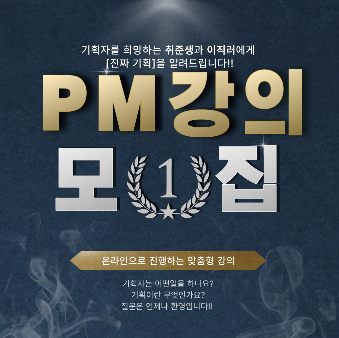 안녕하세요, 현재 IT PM/PO직 및 기획교육을 진행하고 있는 송사장입니다. 여러분들께 "온라인으로 진행하는 [진짜 기획] 강의"를 소개합니다! . 기획이란 무엇일까요? 사업기획, 상품기획, APP기획 등등 우리가 만나는 모든 서비스에는 기획이 들어갑니다. 잘 만든, 잘된 서비스들의 [진짜 기획]은 어떻게 되있을까요? . *이런 분들이 신청하시면 좋아요 1) 기획자가 되고 싶으신 분 2) 기획 직군에서 연봉을 높이고 싶으신 분 3) 잘하는 기획을 배우고 싶으신 분 4) APP, WEB, 상품기획을 배우고 싶으신 분 . *이런 활동을 합니다. 1) 각자 개인의 아이디어로 개인 프로젝트를 진행합니다. 2) 아이디어부터 MVP까지 직접 만들어 보는 시간을 갖습니다. 3) 멘토의 코칭으로 현업의 꿀팁과 연봉상승의 노하우를 배웁니다. . *MMO 강의만의 혜택 1) 실무강의 진행 2) 개인 포트폴리오 작성 3) 수료증 증정 4) 각종 MMO 프로그램에 할인혜택 5) 스터디그룹과 연계 6) 기획직무에 희망하거나 현직자들과의 소통방 형성 . *강의 정보 및 커리큘럼 1) 기획클래스 - [화\, 목]반 : 오후 9시 \~ 10시 진행 - [수\, 금]반 : 인원마감 2) 역기획클래스 - [화\, 목]반 : 인원마감 - [수\, 금]반 : 오후 10시 \~ 11시 진행 . *모집기간 : 2022.11.09 \~ 2022.11.14 - 신청하시면 개별 안내 메일을 전송해드립니다. . *진행기간 : 2022.11.15 \~ 2022.12.13 . *모집인원 : 50명 **선착순으로 마감될 수 있습니다** . *신청 링크 : https://forms.gle/oKZhmu3mfvUna6tz5 . *문의 카톡 : https://open.kakao.com/o/sUyKZ3te