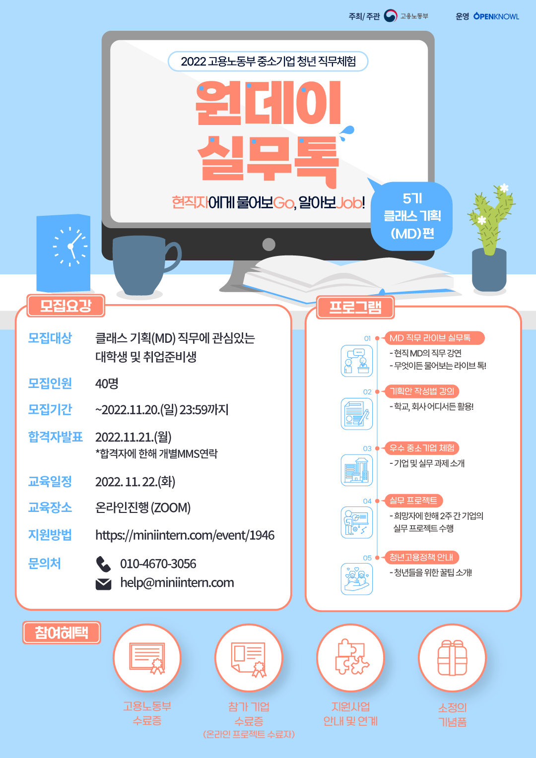 클래스 기획(MD)에 관심 있는 대학생 및 취업 준비생 40명 이내