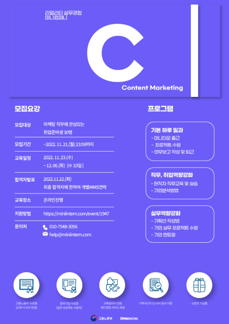 - 고용노동부 / 미니컴퍼니 C 콘텐츠 마케팅 편