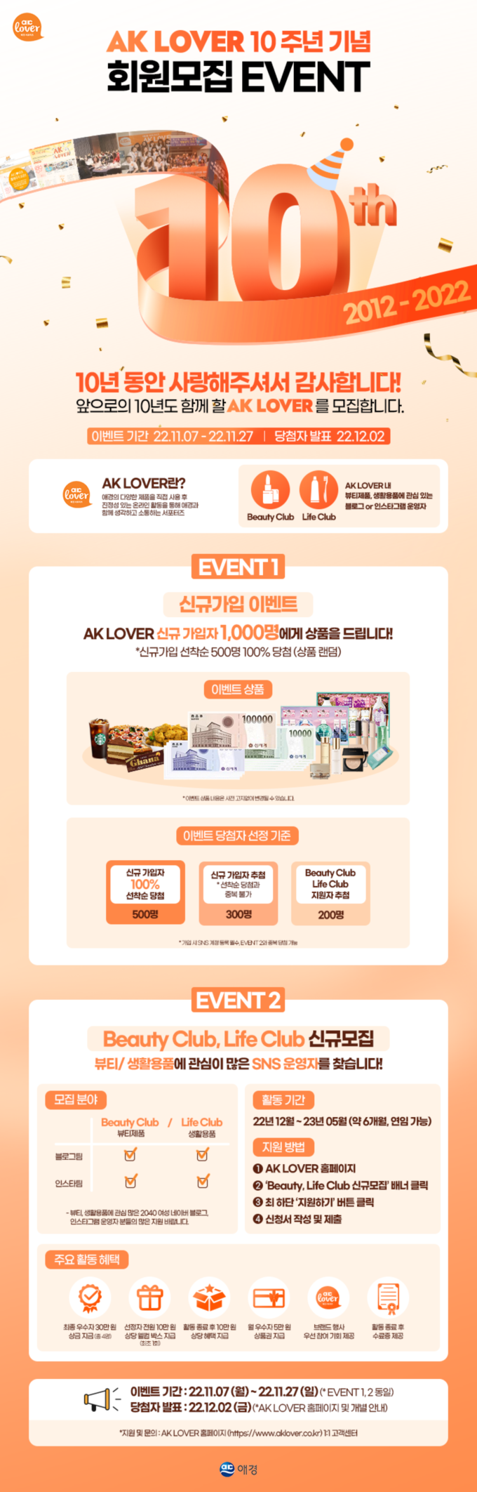 ★ 애경 서포터즈 AK LOVER 10주년 기념 회원모집 이벤트