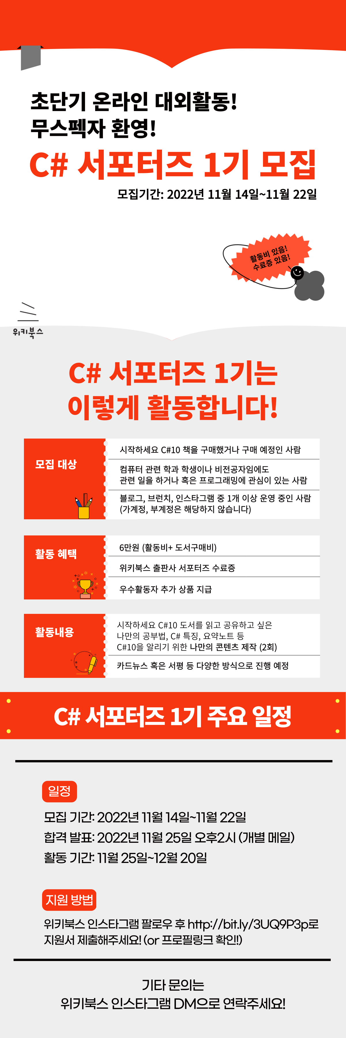 🥳활동 혜택 활동비 6만원 (책 구매비 포함) 위키북스 출판사 서포터즈 수료증 우수활동자 추가 상품 지급