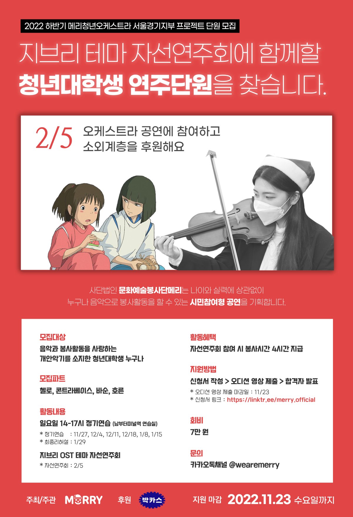 ๐ํ๋ ๊ธฐ๊ฐ 2022๋ 11์ - 2023๋ 2์ โ ๐์ฃผ์ ํ๋ - ์คํ๋์ค ์ง๋ธ๋ฆฌ ํ๋ฆ์ฝ์ํธ๋ฅผ ํจ๊ป! ๐ฌ - ์์ธ ๊ณ์ธต ํ์์ ์ํ ๐์ค์ผ์คํธ๋ผ ์์ ์ฐ์ฃผํ๐ - ์์ ์ ์ฌ๋ํ๋๐๋ค์ํ ์ฌ๋๋ค๊ณผ ๋ชจ์ฌ ์ฆ๊ฒ๊ฒ ํ๋ํ๊ธฐ!