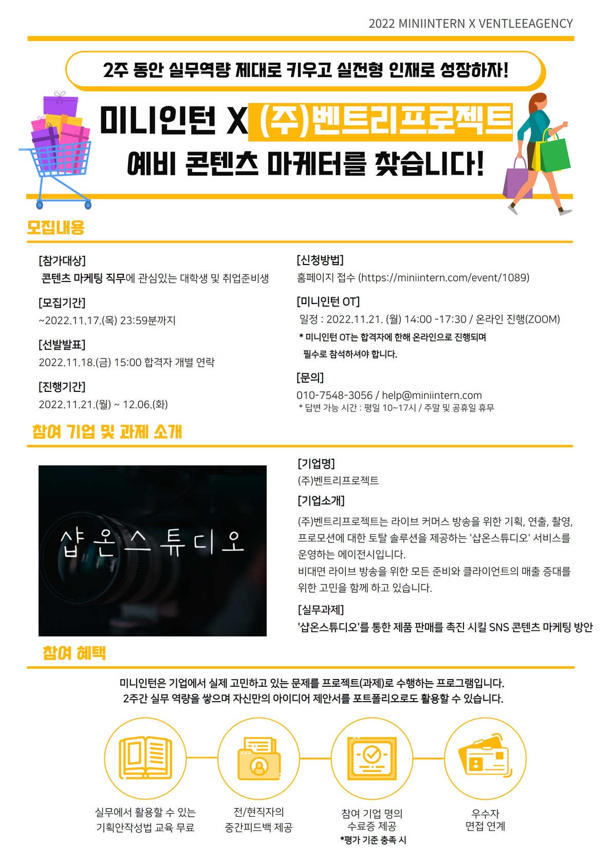 ▶기타 / 문의 E-MAIL : help@miniintern.com TEL : 010-7548-3056 으로 연락해주시기 바랍니다. (평일 10시\~18시/ 주말 및 공휴일 휴무)