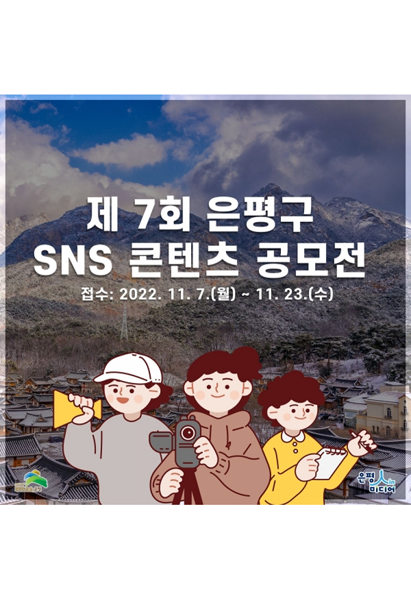 ○ 공모개요 - 제7회 은평구 SNS 콘텐츠 공모전을 개최합니다. 많은 지원과 관심 부탁드립니다.