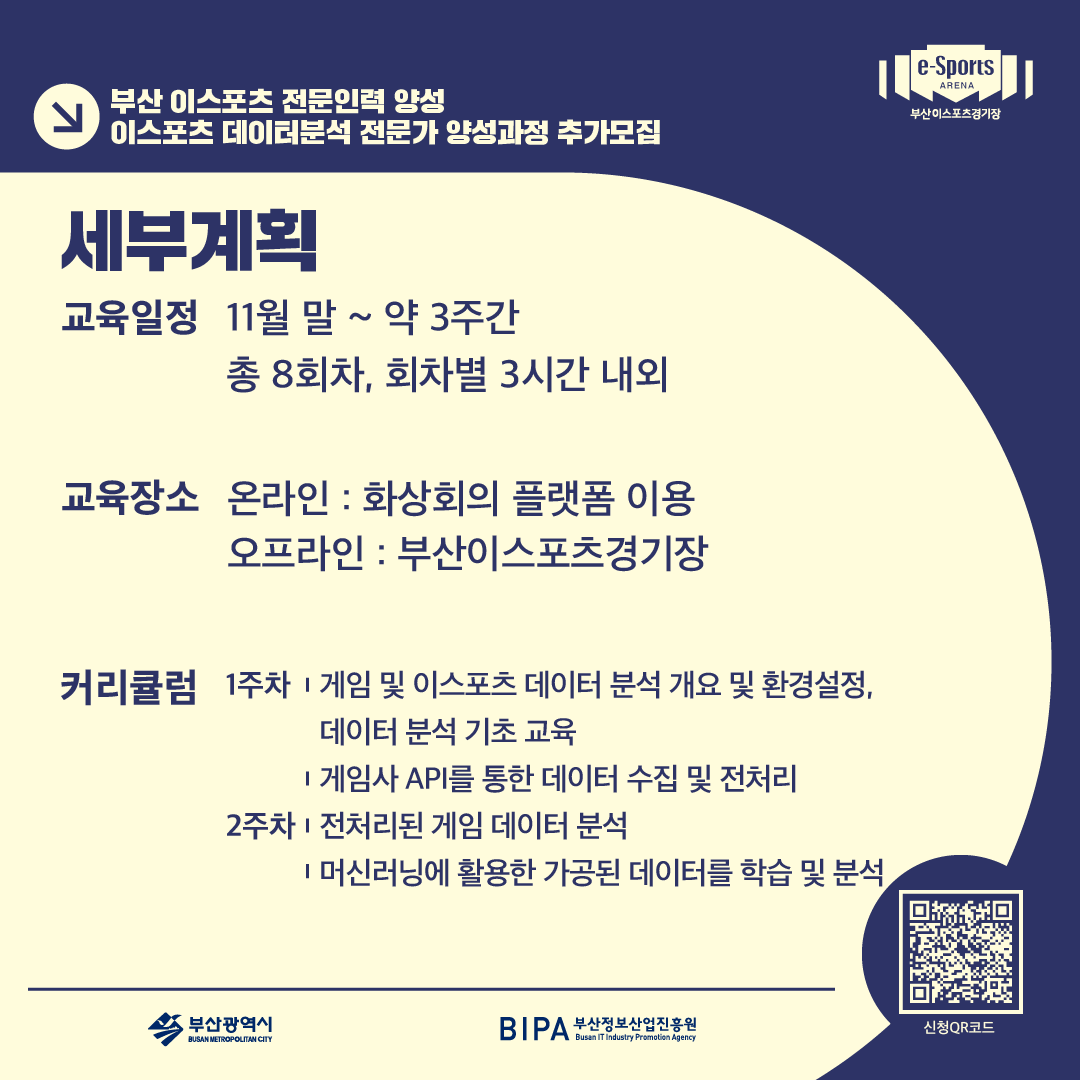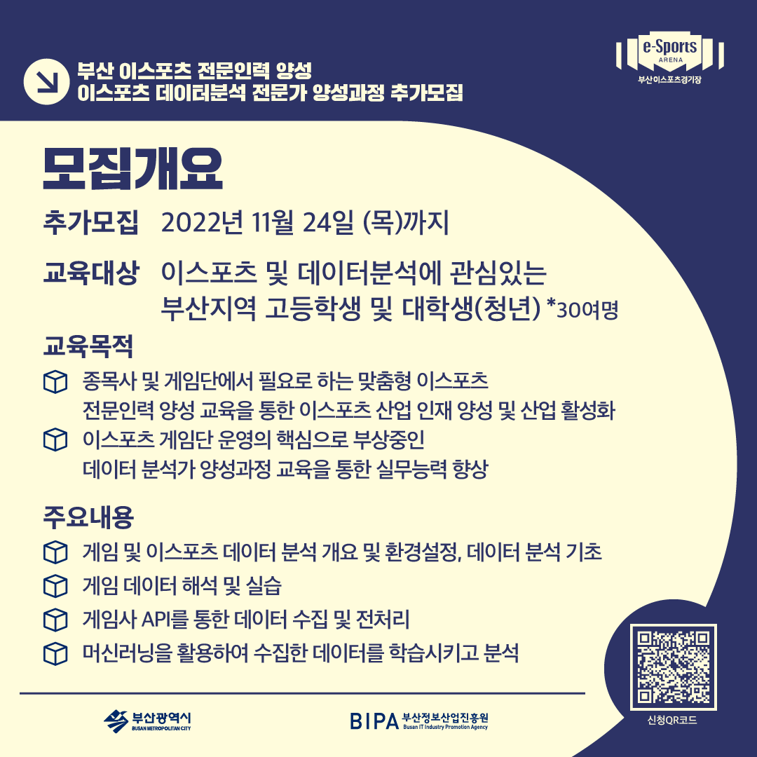 📍 교육대상 : 이스포츠 및 데이터분석에 관심있는 부산지역 고등학생 및 대학생(청년)