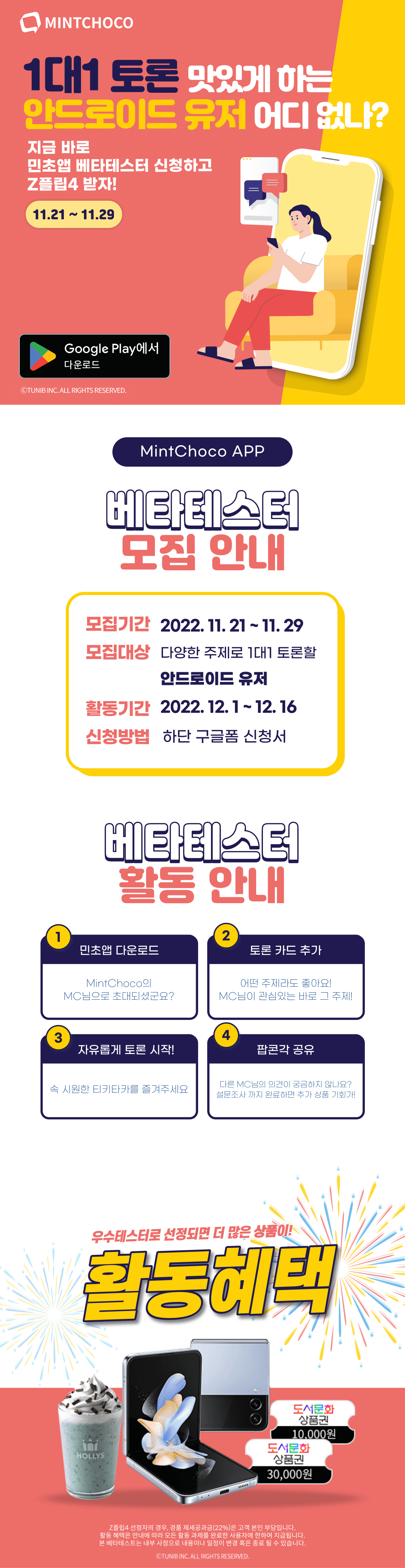 활동 내용과 피드백은 베타 테스트 이후 출시되는 민트초코 앱에 유지되며 익명으로 마케팅에 활용될 수 있습니다.
