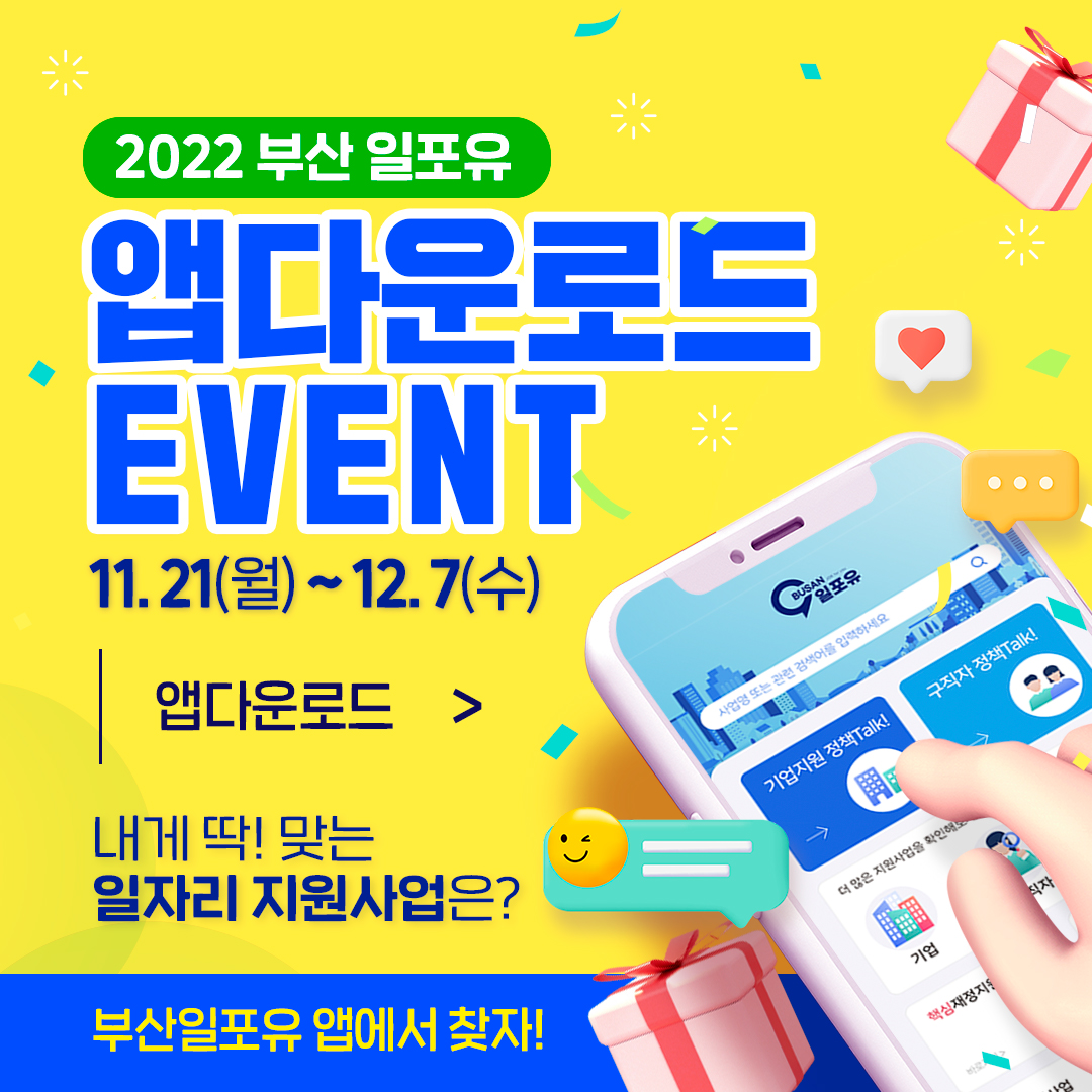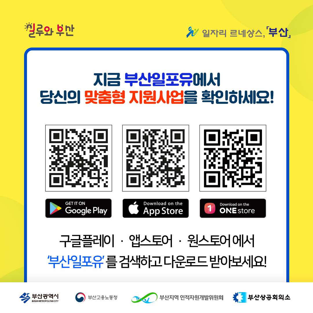 나에게 꼭 필요한 정부 또는 부산시지원사업을 "부산일포유" APP 하나로 한눈에 알아보세요 \~!